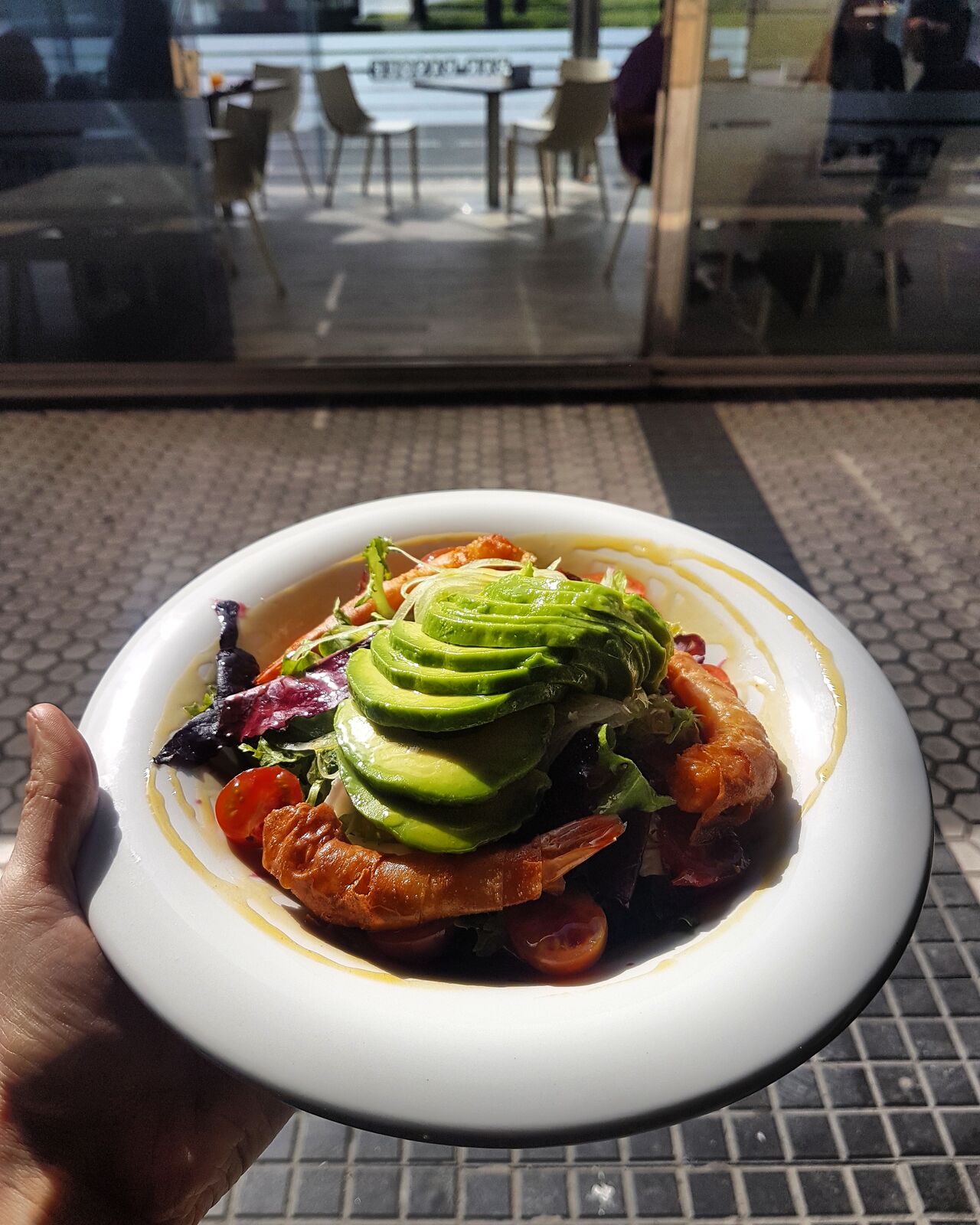 Tostada con tómate natural y aguacate.